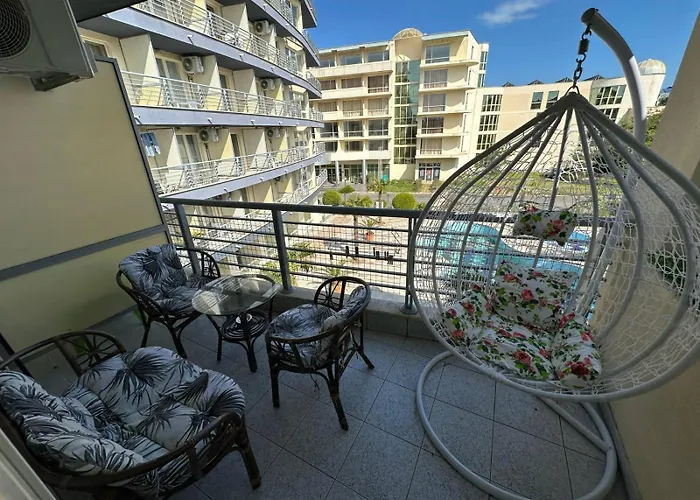 El Apartamento Дрийм 2 Мечта 2 Sunny Beach está situado a una distancia de 450 metros del Royal Beach Mall, y a unos 6 km de la Iglesia de San Esteban. Este apartamento de 42 m^2 incluye una terraza con vistas a la piscina y piscina.